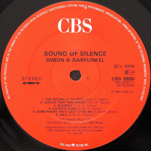 | A1 | The Sounds Of Silence Written-By – P. Simon* | |